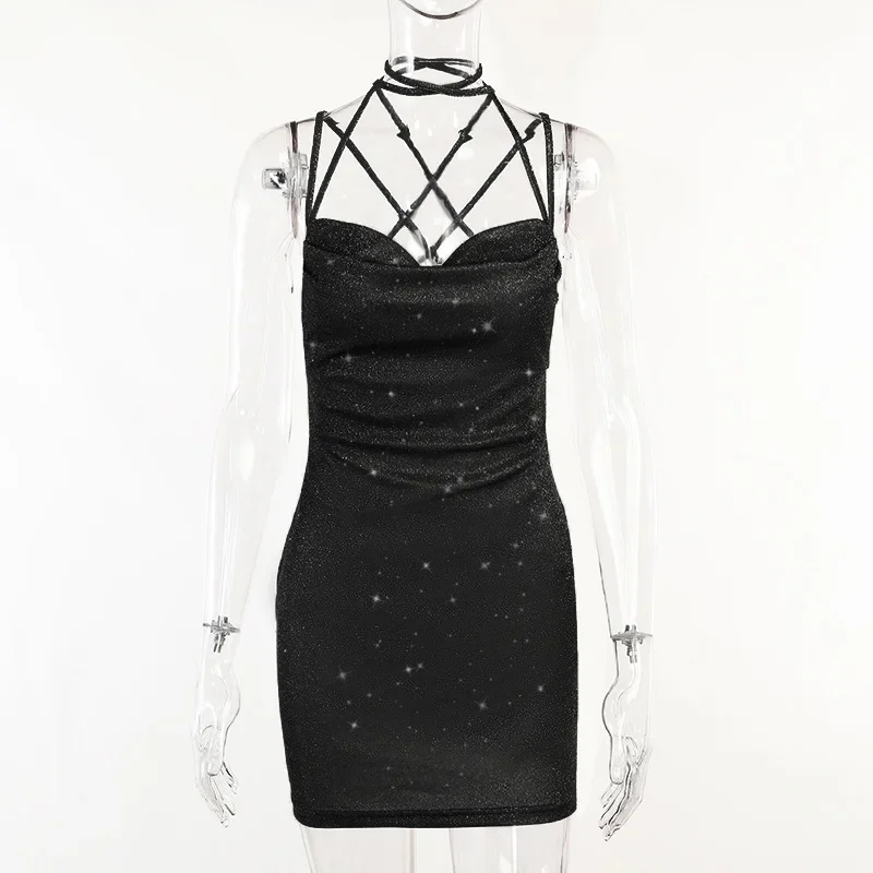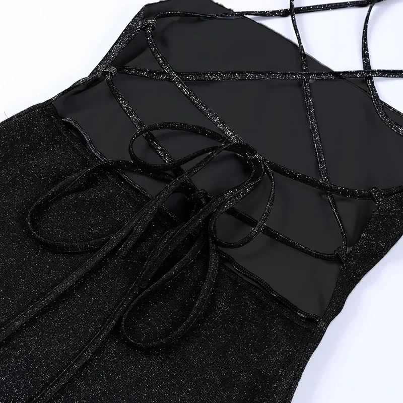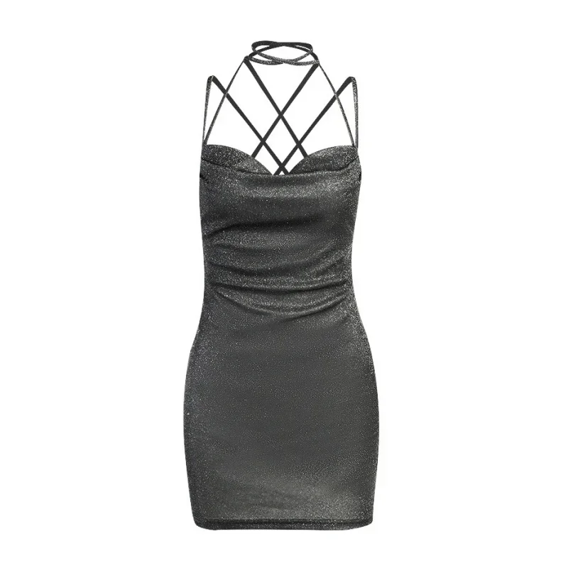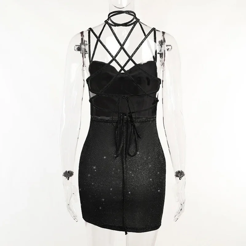Backless Bodycon Dress For Women Sexi Night Dress Hot Club Outfits Bandage Tie Back Vestidos De Mujer Bright Silk Y2k Clothes